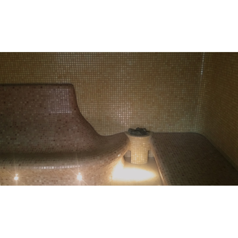 Los bancos, las paredes y los techos de la sauna de vapor están fabricados individualmente con poliestireno extruido especial.