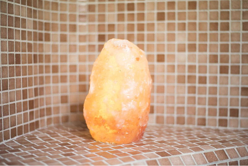 La sauna está decorada con lámparas de sal del Himalaya, que no solo proporcionan luz y comodidad, sino que también son beneficiosas para la salud. Los cristales de sal calentados emiten iones negativos que actúan como equilibradores, creando un clima natural como en las montañas, cerca del mar o en las cascadas.