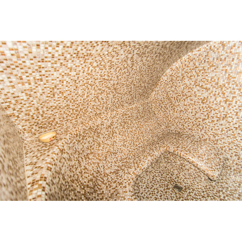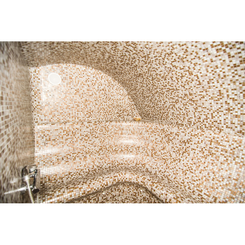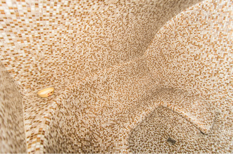 Acabado: mosaicos de vidrio triturado de colores neutros.