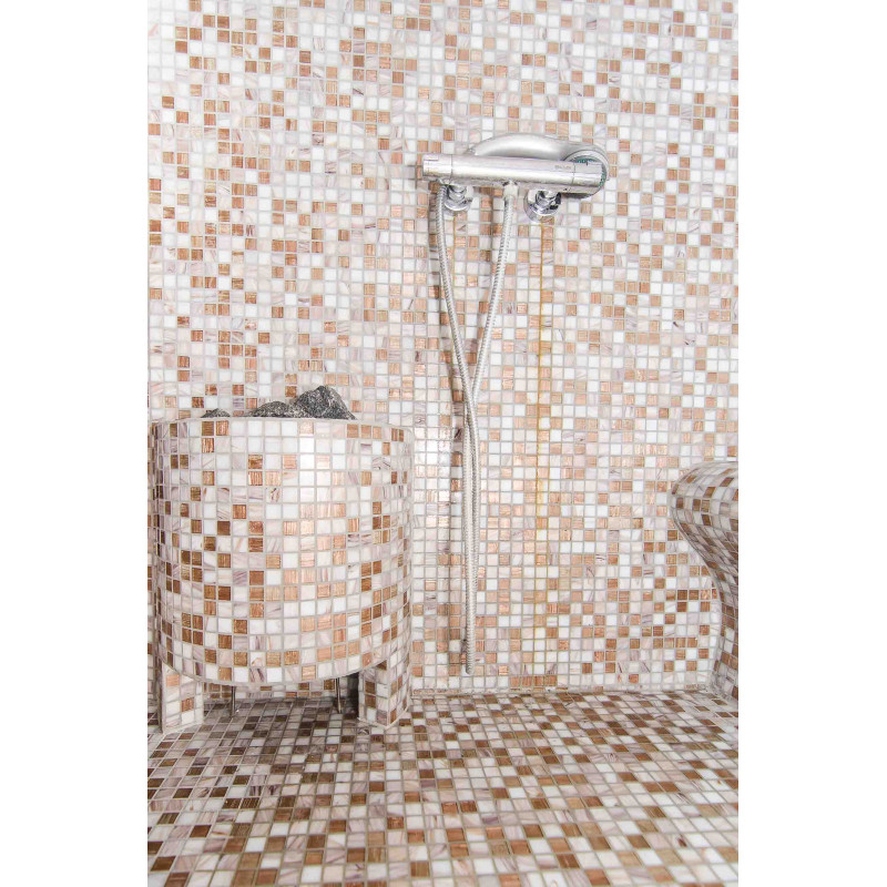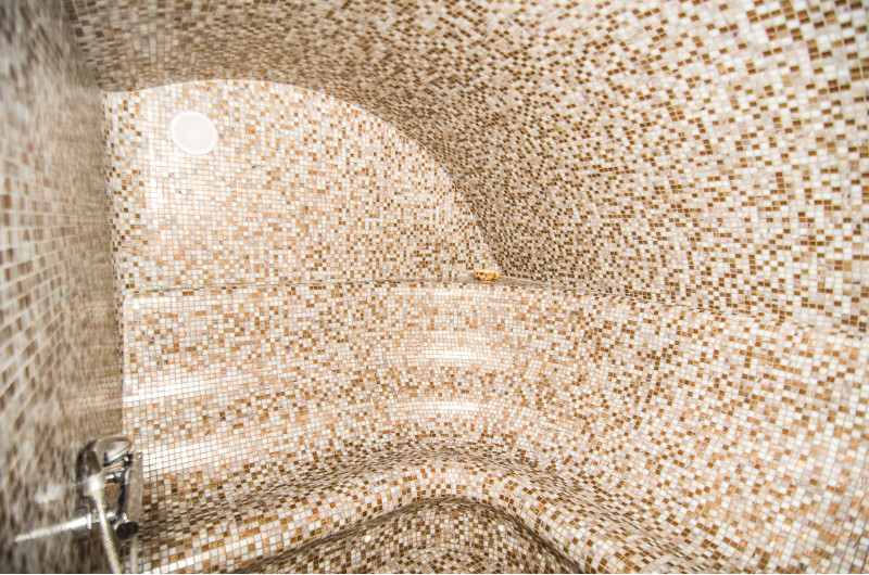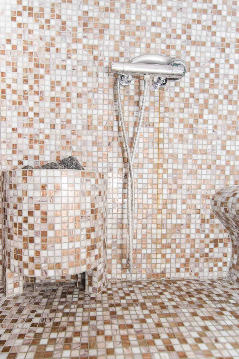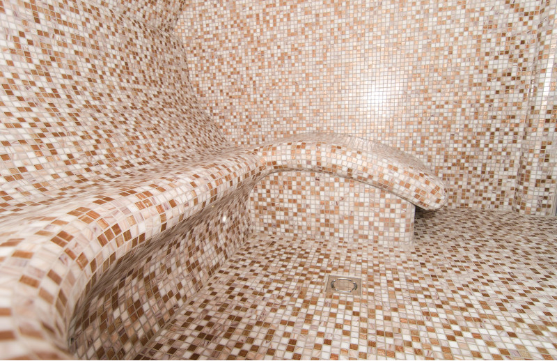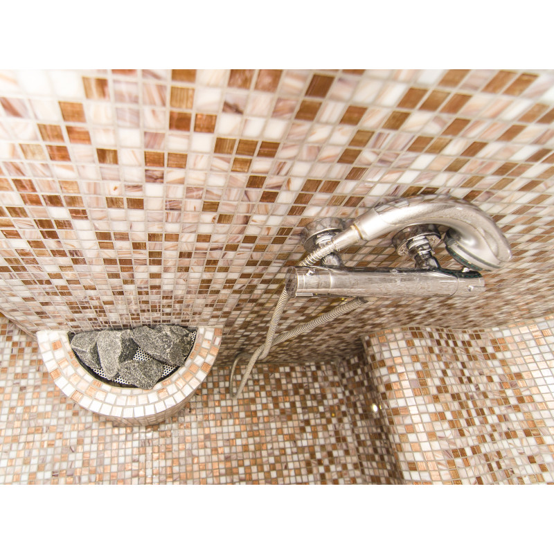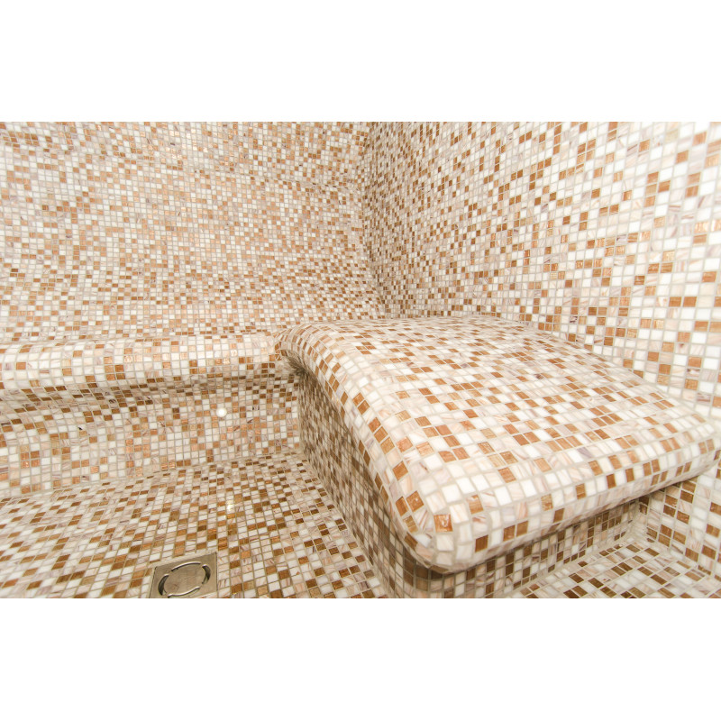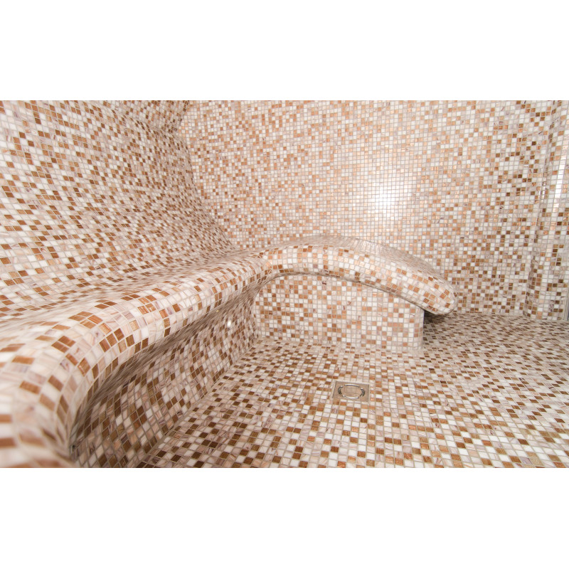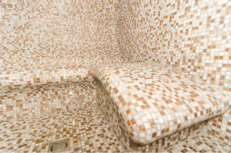 Los bancos, las paredes y los techos de la sauna de vapor están fabricados individualmente con poliestireno extruido especial. El techo tiene una forma de arco típica de todas las saunas de vapor.
