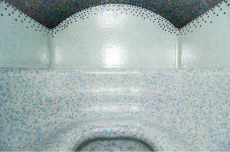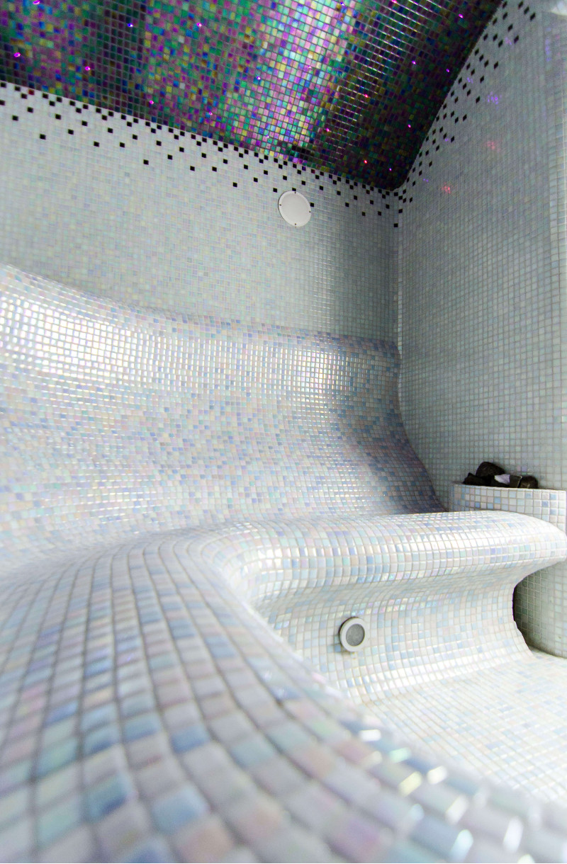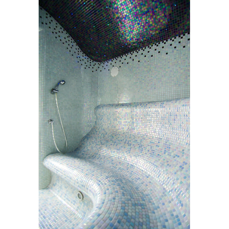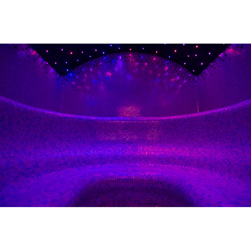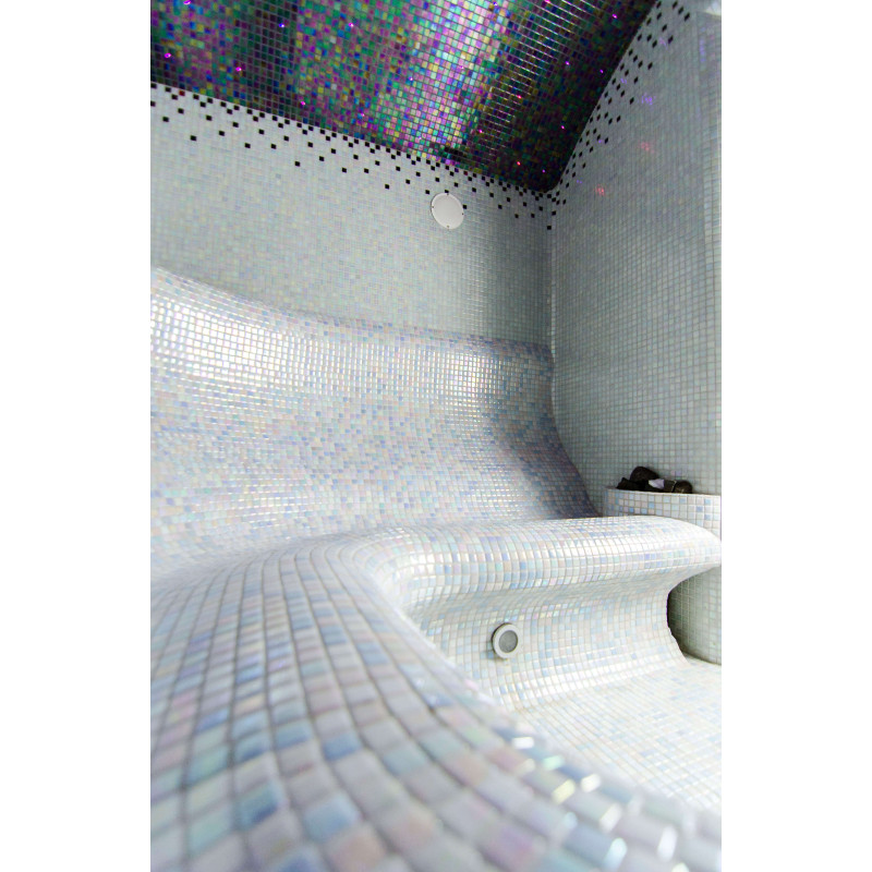 Los bancos, las paredes y los techos de la sauna de vapor están fabricados individualmente con poliestireno extruido especial. Los techos tienen forma de arco, típico de todas las salas de vapor, por lo que no se puede acumular ningún condensado de vapor en ellos. Posiciones para sentarse, bancos curvos de formas cómodas para un descanso placentero en la sauna. Los bancos se vacían para evitar que el sudor y la humedad se acumulen en ellos.