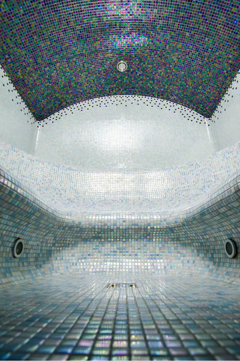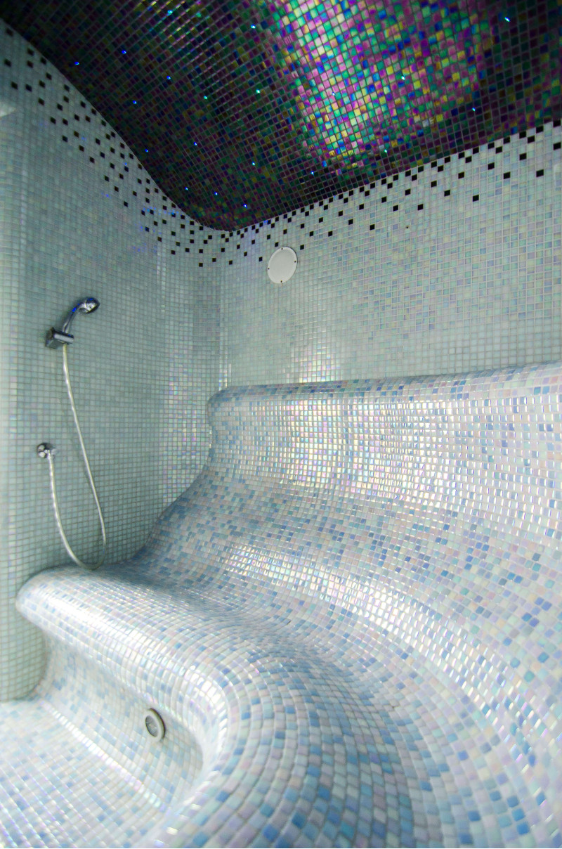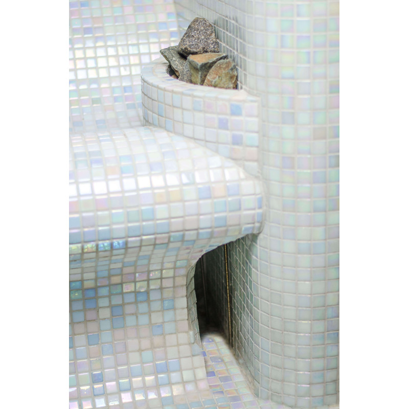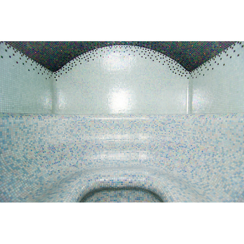 Los bancos, las paredes y los techos de la sauna de vapor están fabricados individualmente con poliestireno extruido especial. Los techos tienen forma de arco, típico de todas las salas de vapor, por lo que no se puede acumular ningún condensado de vapor en ellos. Posiciones para sentarse, bancos curvos de formas cómodas para un descanso placentero en la sauna. Los bancos se vacían para evitar que el sudor y la humedad se acumulen en ellos.