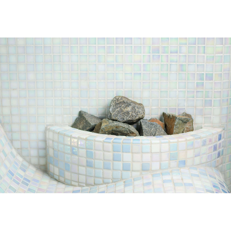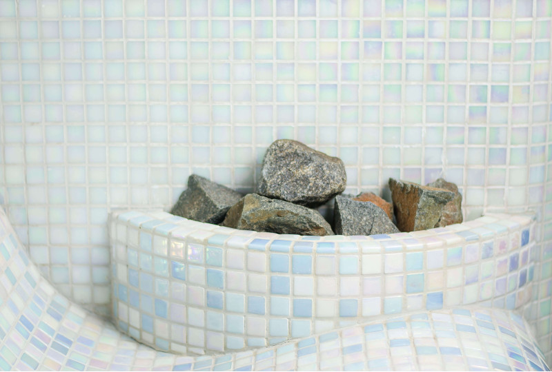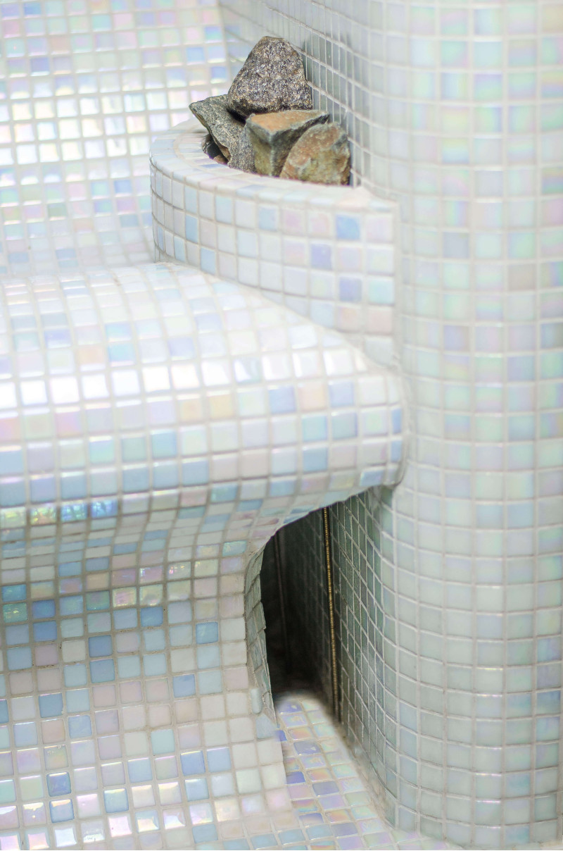 La sauna también tiene un jarrón de vapor, que actúa como un tubo de protección de vapor a través del cual el vapor ingresa a la sauna. El jarrón está decorado con piedras de diabasa de olivino.