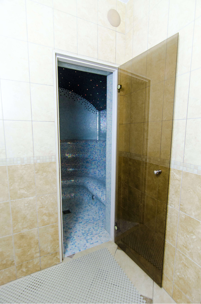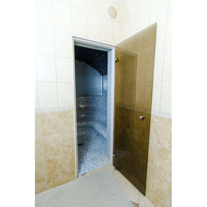 Las puertas de vidrio se fabrican bajo pedido individual. La puerta es resistente a la humedad y las fluctuaciones de temperatura. Marco de puerta - mármol.