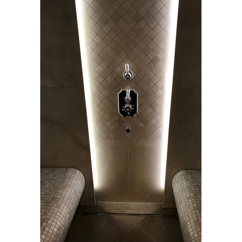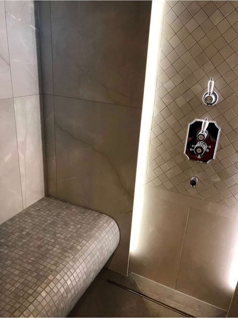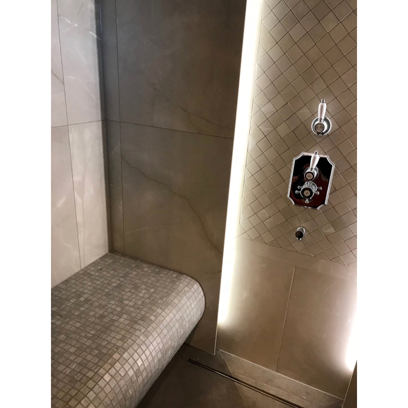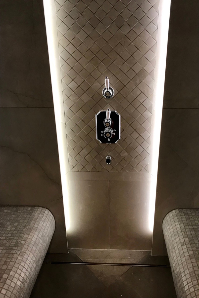 Los pisos y bancos con calefacción eléctrica brindan mayor comodidad en la sauna climatizada.