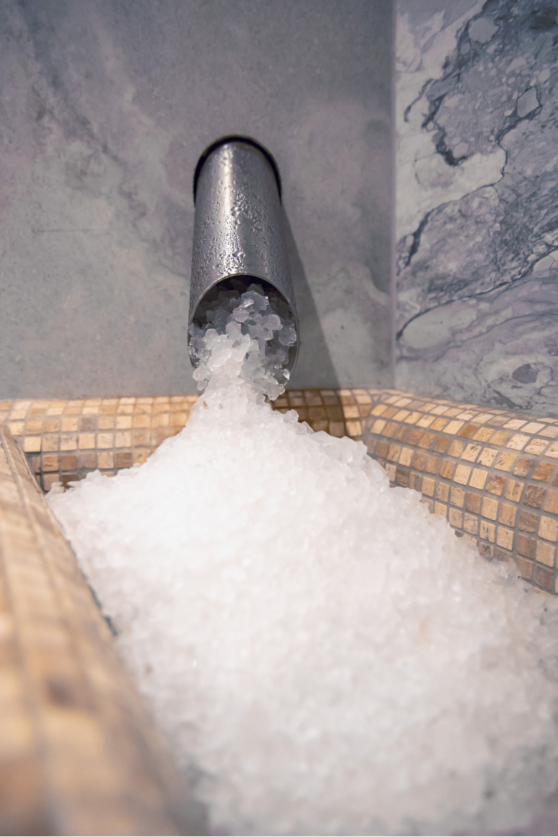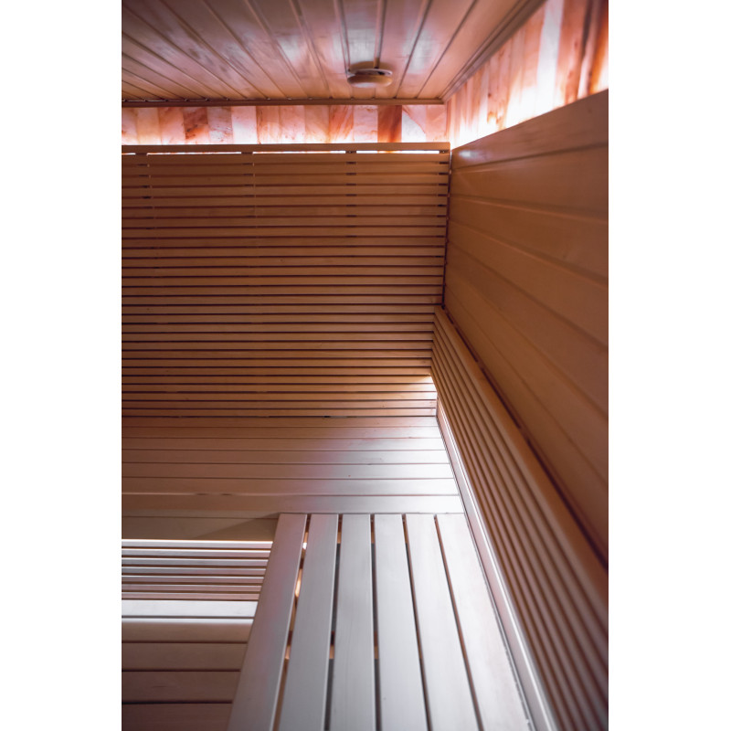 A menudo considerada como una de las sales naturales más puras, la sal del Himalaya tiene muchos efectos positivos para la salud. Ayuda a limpiar el tracto respiratorio, mejora el estado de la piel y promueve la desintoxicación del cuerpo. Los ladrillos de sal del Himalaya se calientan en la sauna, liberando iones negativos que pueden neutralizar las influencias ambientales dañinas como la contaminación o la radiación electromagnética. Además, la terapia con sal (haloterapia) ayuda a fortalecer el sistema inmunológico y reduce el estrés. Es un gran remedio para quienes sufren de alergias o problemas respiratorios.