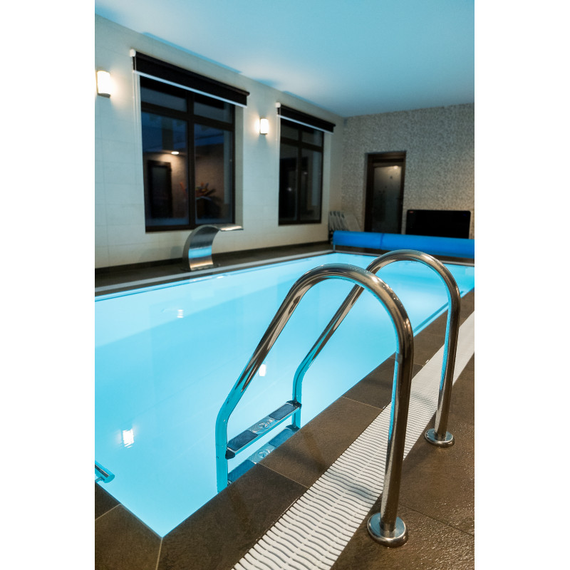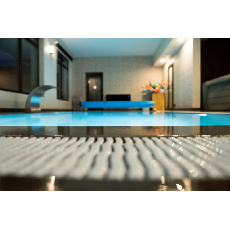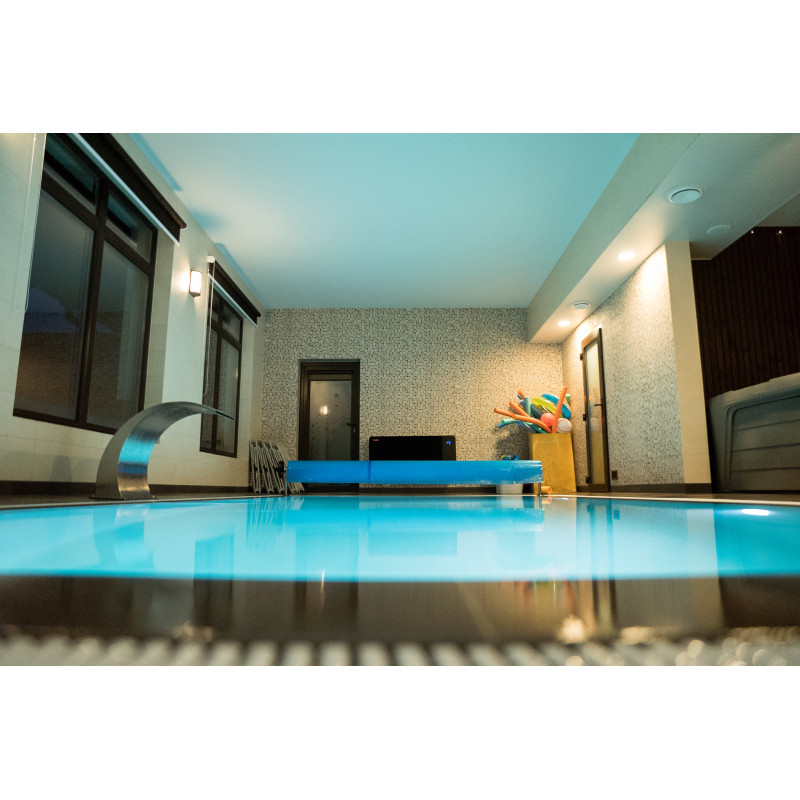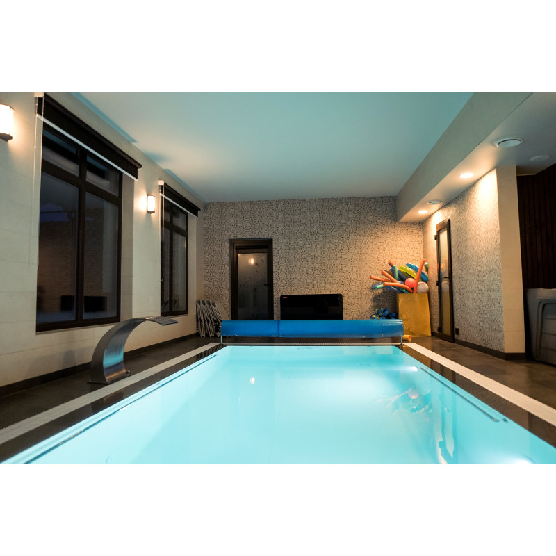 La espaciosa piscina está equipada con una contracorriente de natación y una cascada de agua. La piscina es muy divertida para toda la familia.