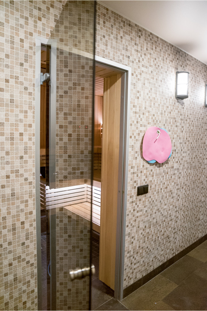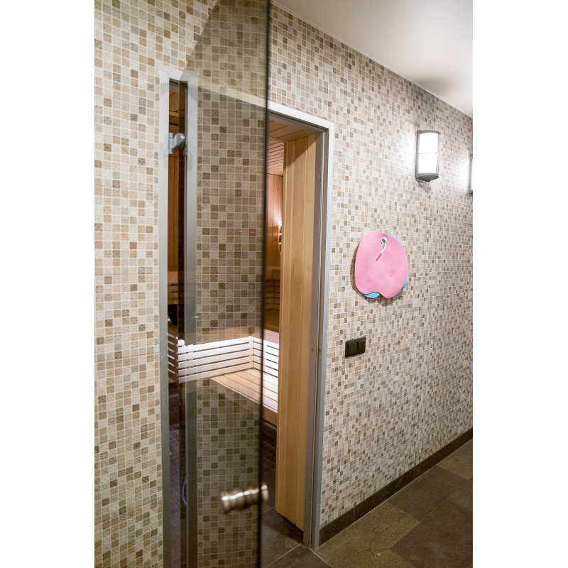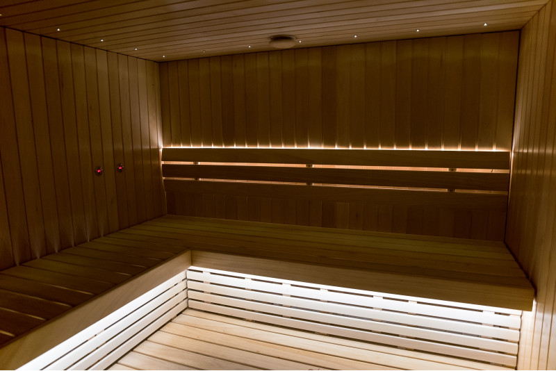 Los detalles interiores de madera de la sauna (bancos y revestimiento) están hechos de madera de aliso negro de alta calidad.