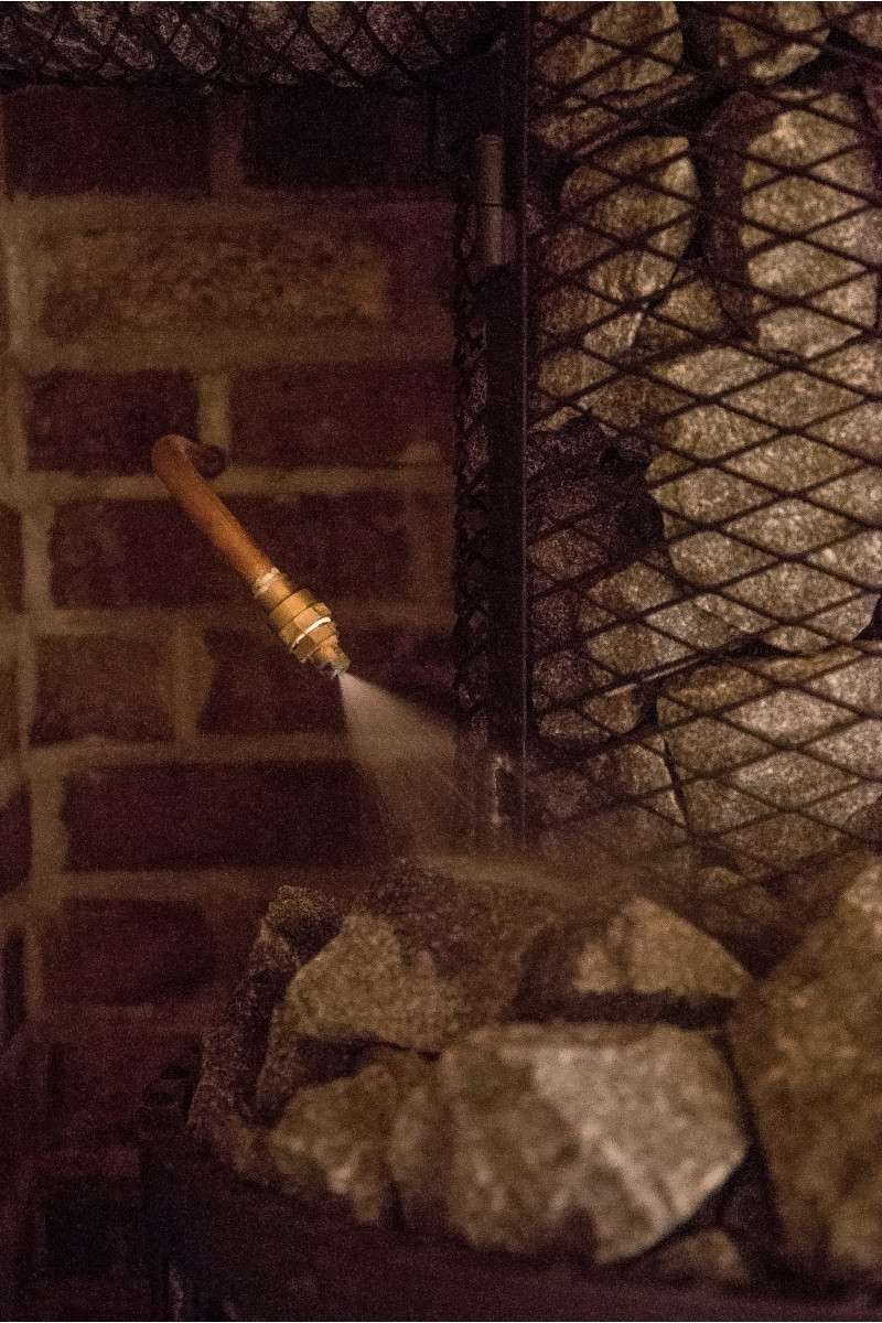 Hay un sistema de llenado de agua automatizado en las piedras y un sistema de fragancia automatizado.