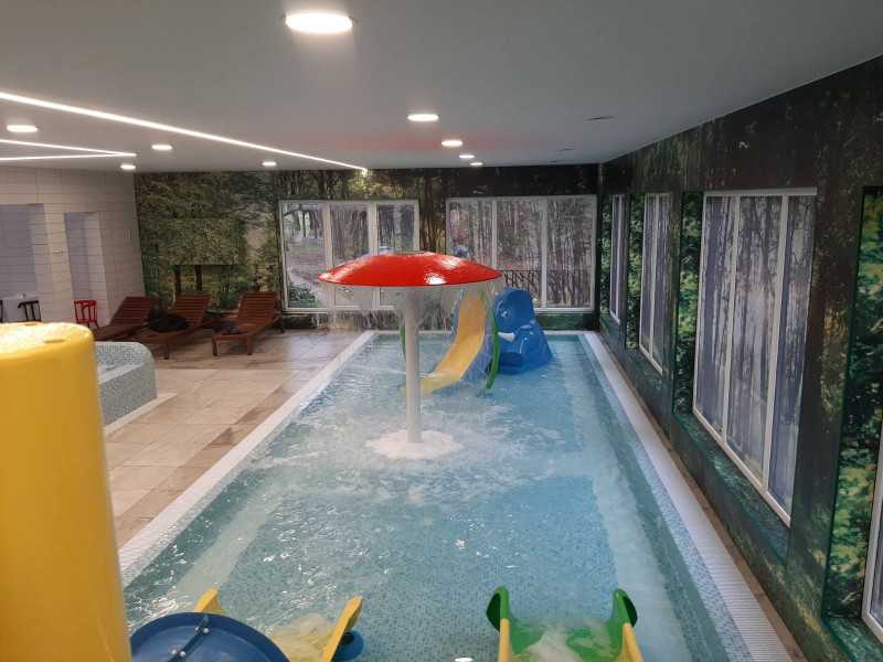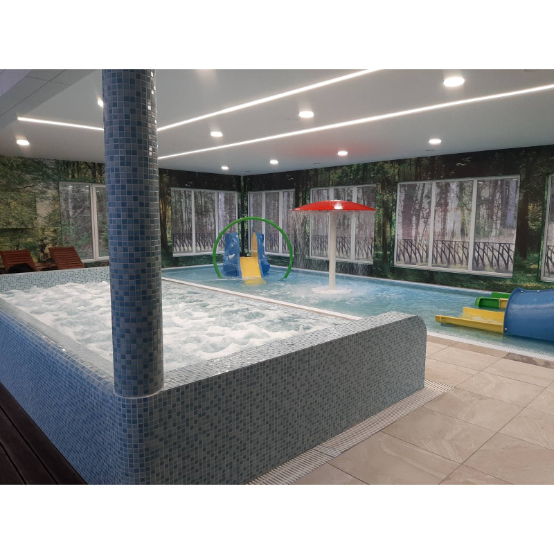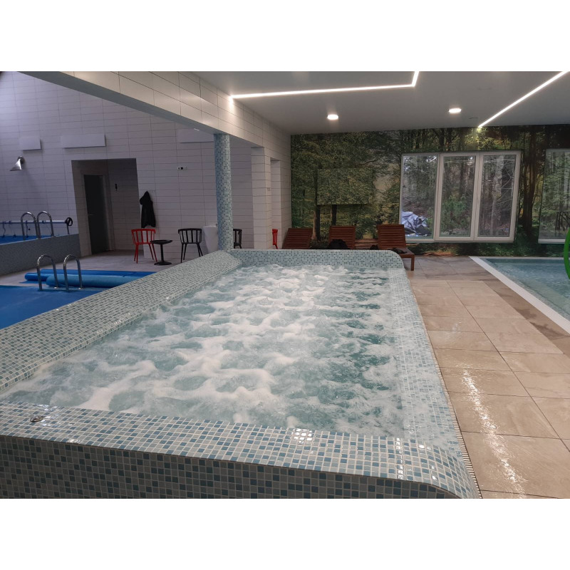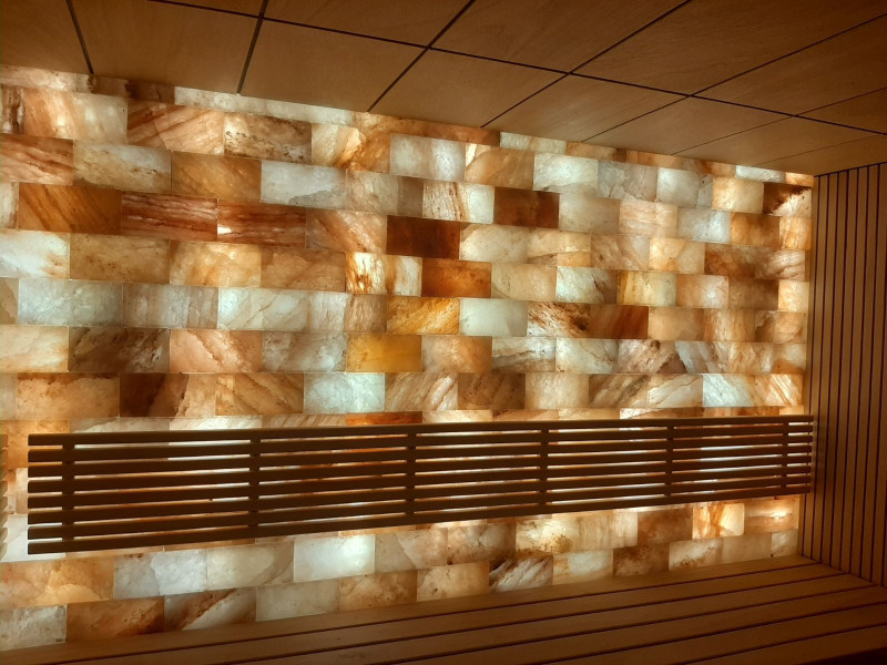 - Sauna de sal del Himalaya: la sal del Himalaya es una de las sales más reconocidas del mundo. La sal del Himalaya mejora la calidad del aire interior, reduce los síntomas de alergia y asma, eleva el estado de ánimo y proporciona energía. La sal del Himalaya se elige no solo por sus propiedades positivas para la salud. La iluminación bajo los ladrillos de sal del Himalaya ha creado un ambiente particularmente acogedor e impresionante.