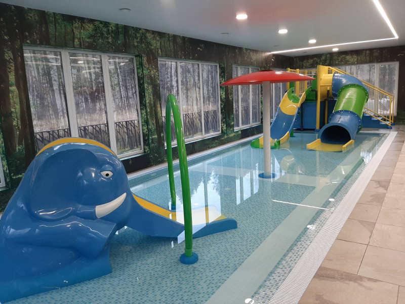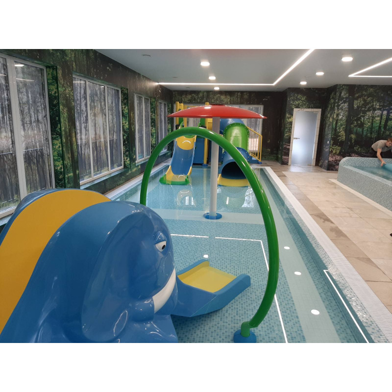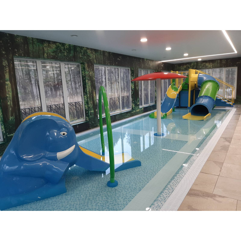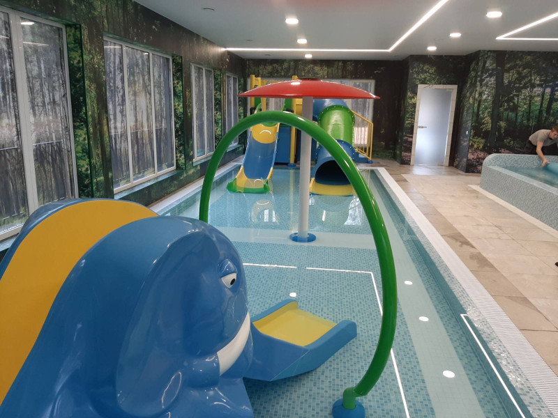 - Dos piscinas para niños con toboganes.