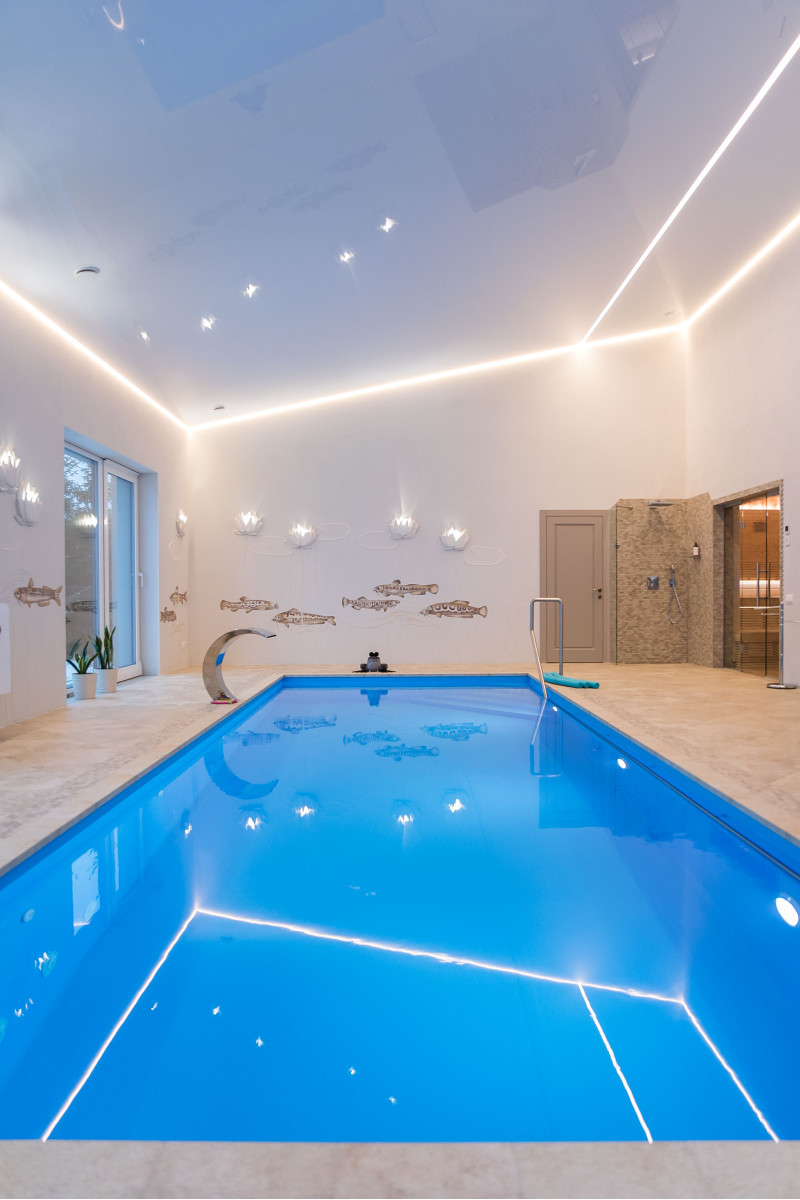 El proyecto de spa está diseñado de acuerdo a las necesidades individuales de la familia. El área de recreación está equipada con: