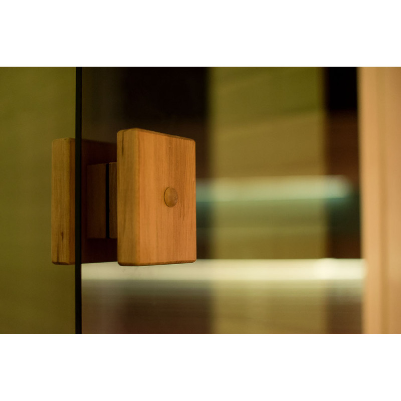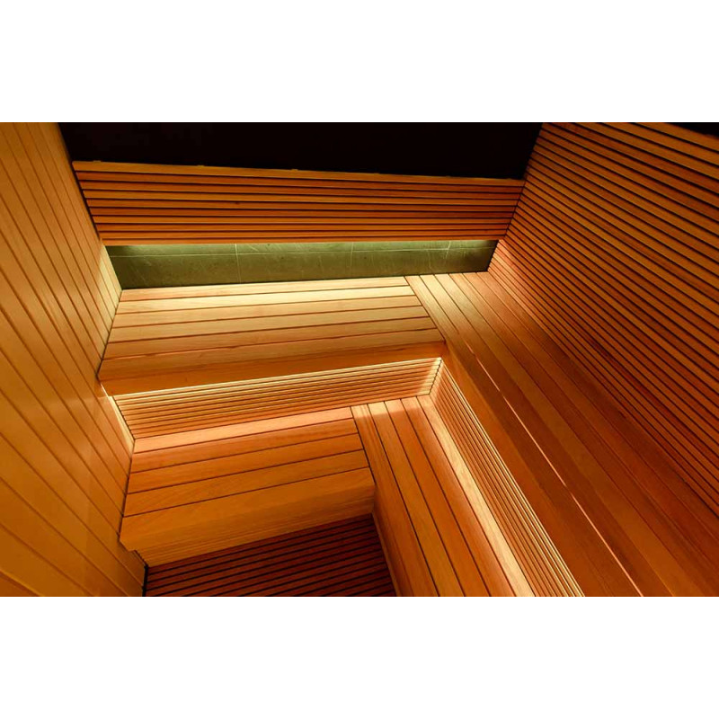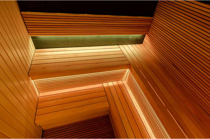 La madera de Abachi se elige para la sala de sauna: es amigable para la piel, porque no se quema ni se calienta, por lo que es conveniente mimarse con los placeres de la sauna. Equipo: