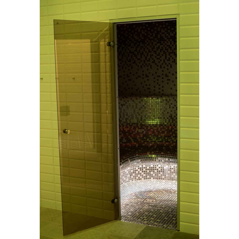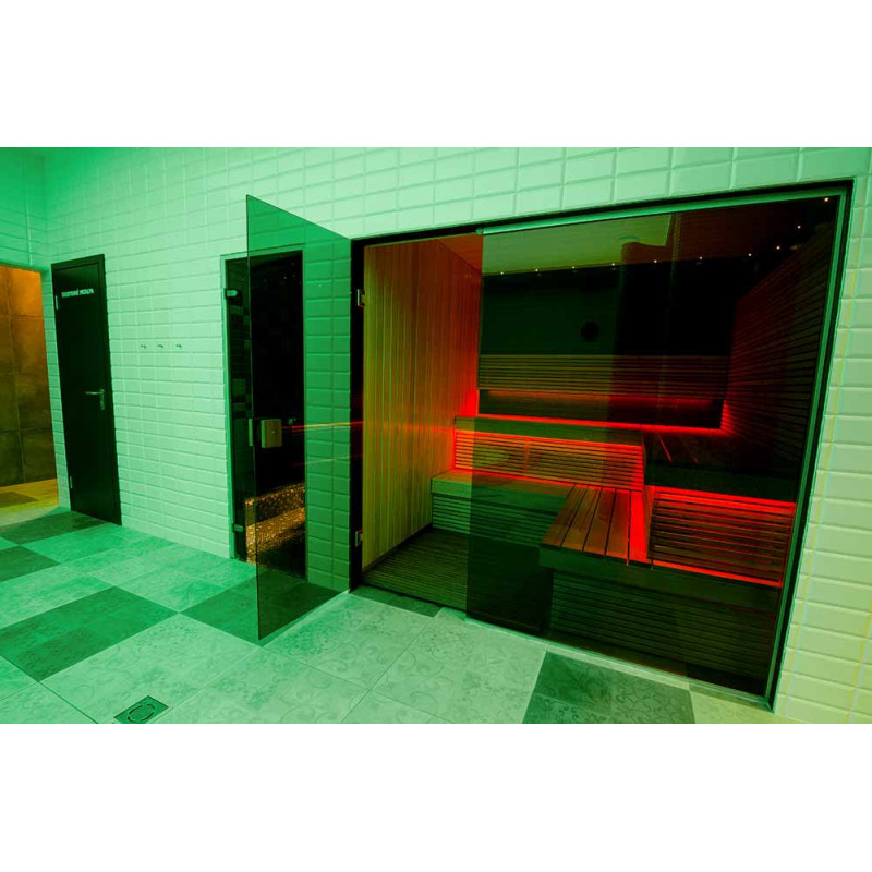 - Creando un estilo impecable, la vitrina de vidrio instalada en la sauna expande el espacio y crea la impresión de ligereza, le da a la habitación luz y modernidad. Vidrio de vitrina - marco de aluminio tintado, templado,