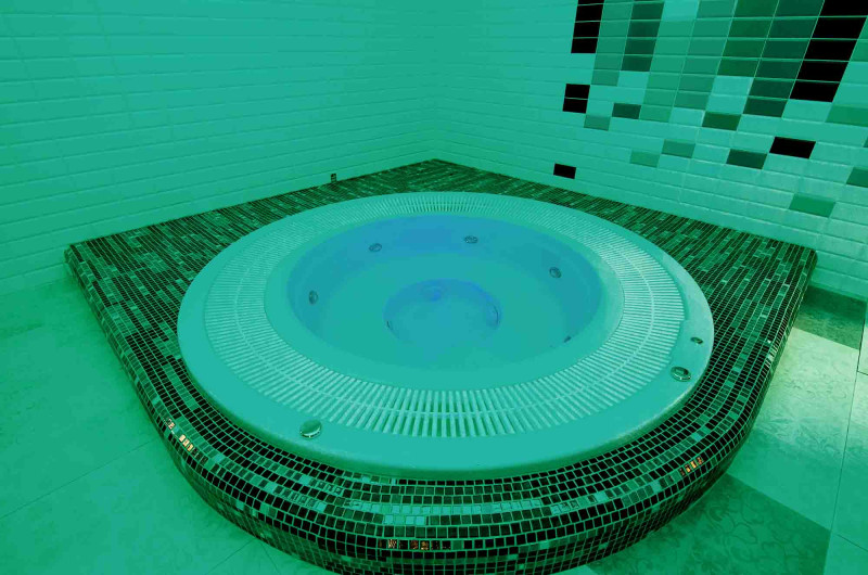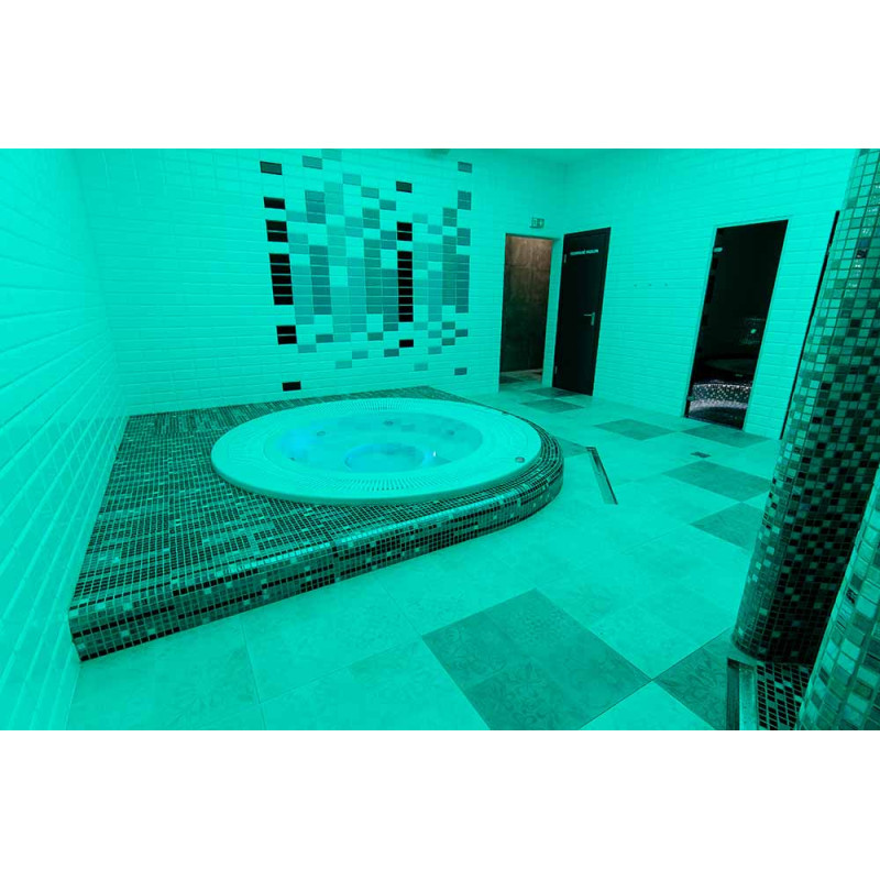 Piscina de hidromasaje - comercial. Azulejos alrededor de la piscina - mosaico de vidrio. Equipo: