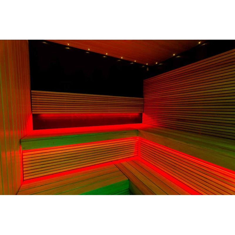- Además de una gran vista, el placer de la sauna se ve reforzado por el sonido: los altavoces instalados debajo de las camas de la sauna son resistentes a la humedad, la corrosión y la temperatura de la sauna,