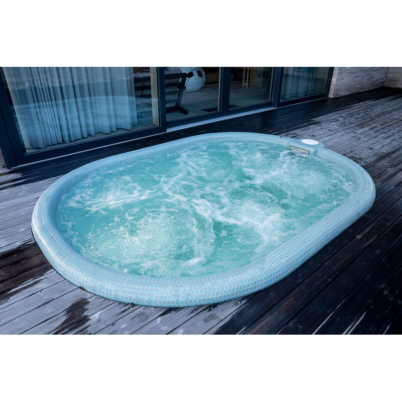 La piscina está equipada con chorros de agua de masaje, iluminación LED RGB subacuática y una cortina de piscina para evitar que la suciedad entre en el agua de la piscina.