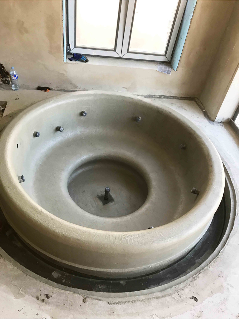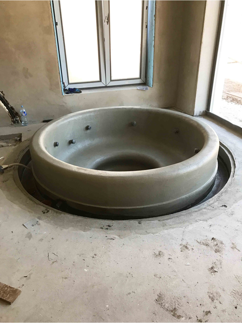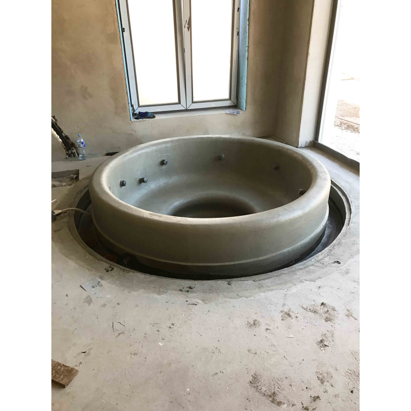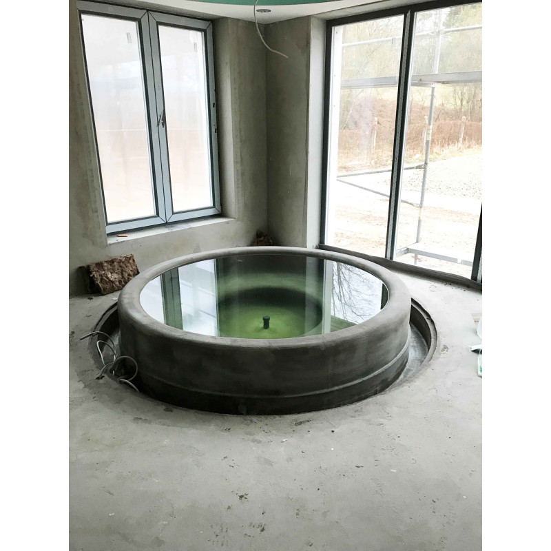 La piscina es de forma redonda, con asientos alrededor de toda la piscina. Las superficies interiores de la piscina se formaron utilizando poliestireno XPS 300 de corte continuo. Es un material extremadamente fuerte y resistente a la humedad y la presión.