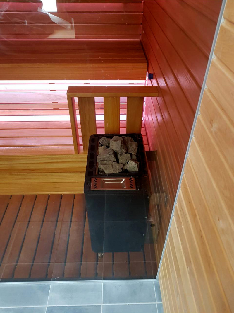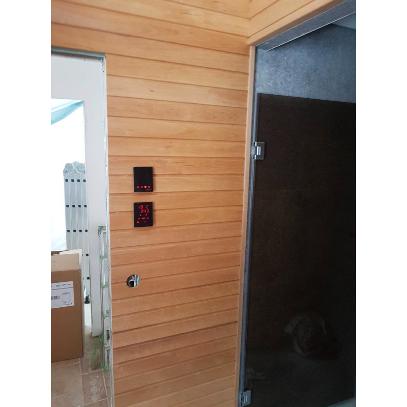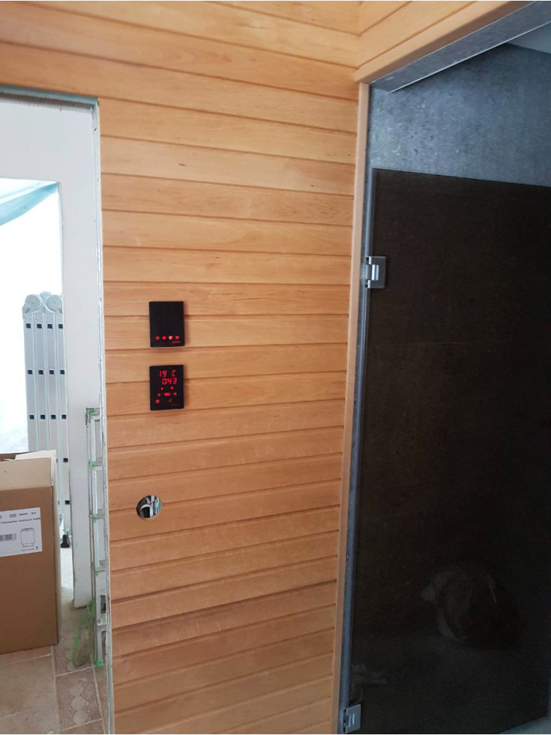 Este proyecto de sauna combina dos modos de sauna: saunas de vapor e infrarrojos. El modo se puede configurar fácilmente con el panel de control construido fuera de la sauna.
