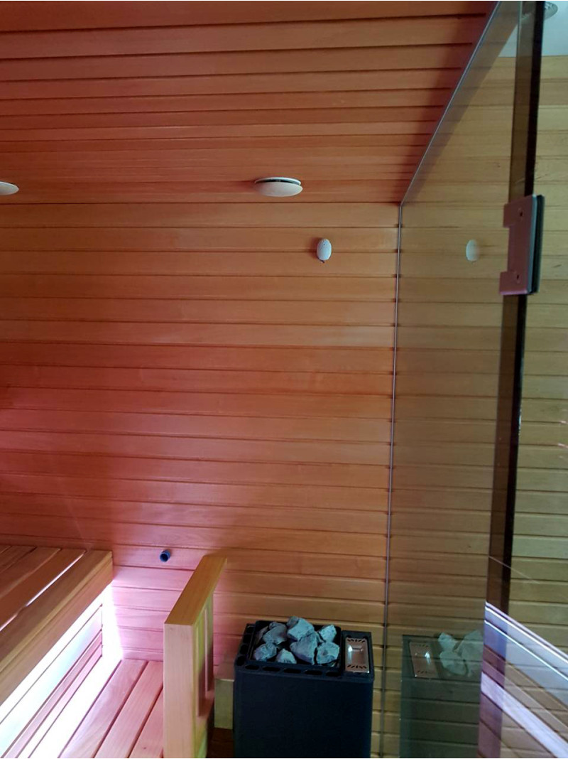 La sauna está equipada con altavoces para que pueda escuchar su música favorita mientras disfruta de la sauna.