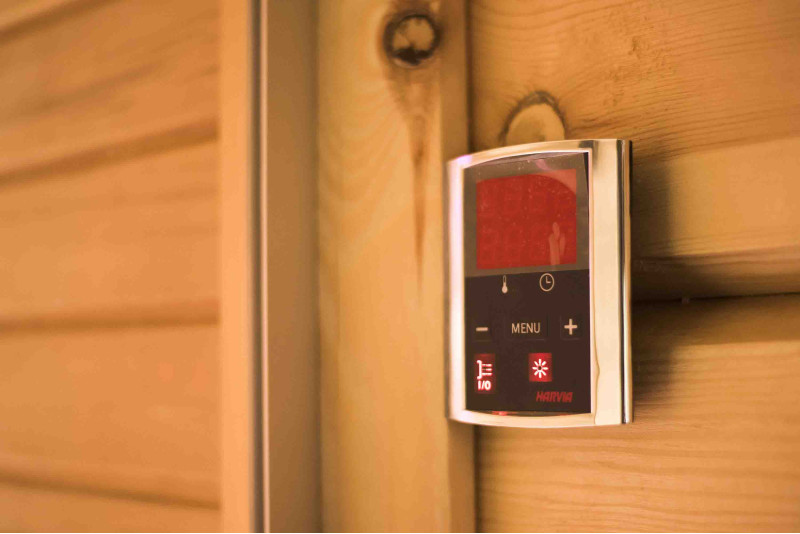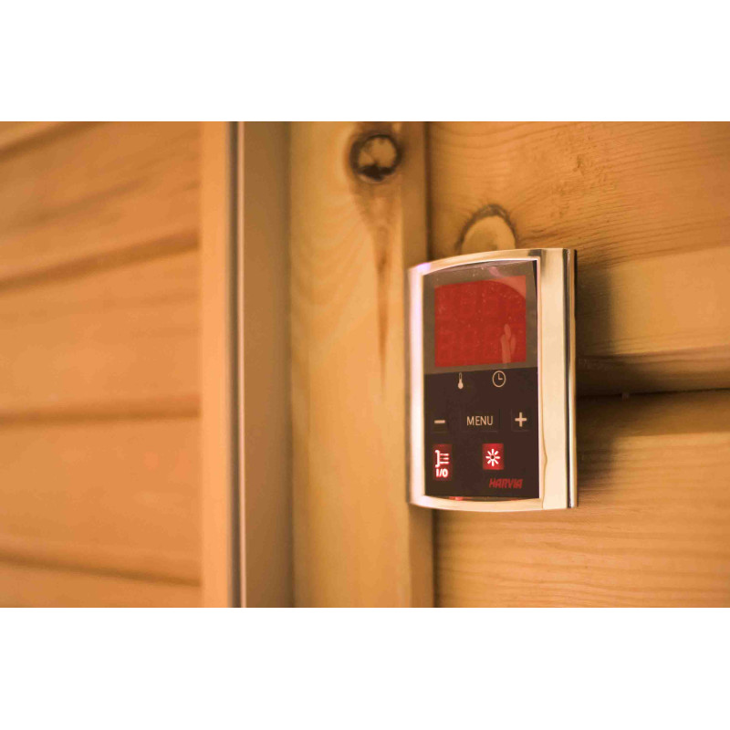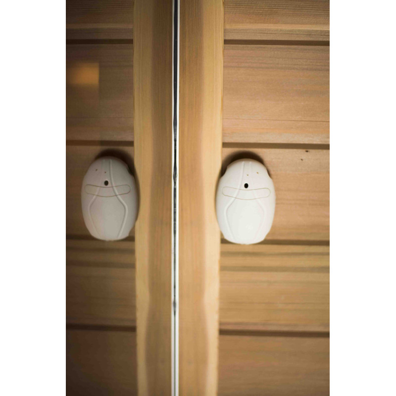 Las paredes y el techo de la sauna están hechos de madera de cedro de la más alta calidad, los bancos están hechos de madera de tilo de la más alta calidad.