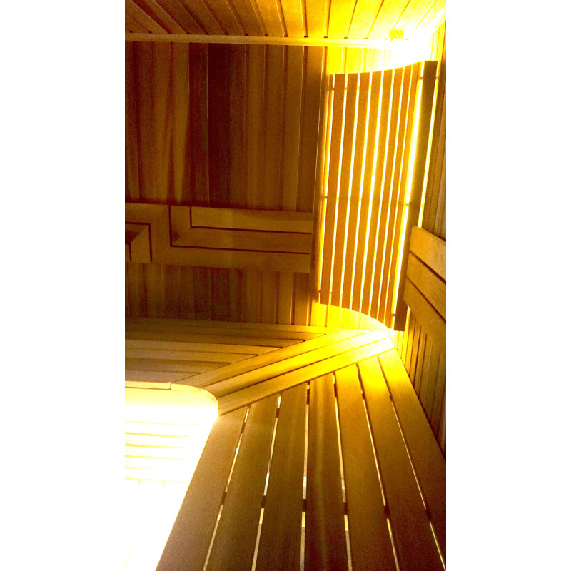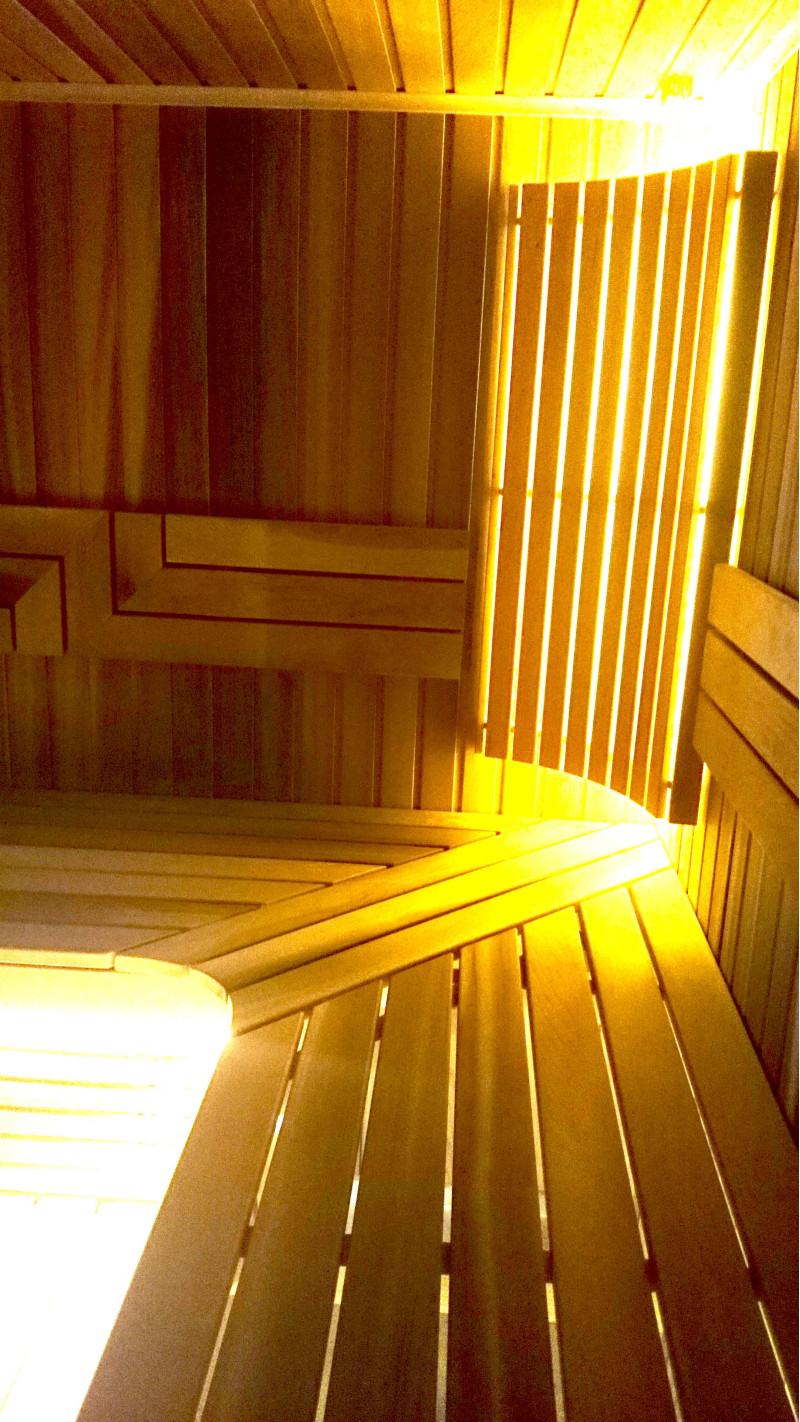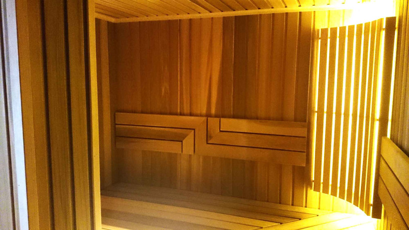 El complejo francés de Cannes cuenta con una sauna hecha de madera de cedro de la más alta calidad. Es una madera que emite aceites esenciales naturales. El cedro es naturalmente resistente a la humedad, por lo que la madera no se deforma, riza ni encoge. Tiene propiedades desinfectantes y antibacterianas. Es una excelente opción para personas con alergias o enfermedades respiratorias, ya que emite un aroma calmante natural.