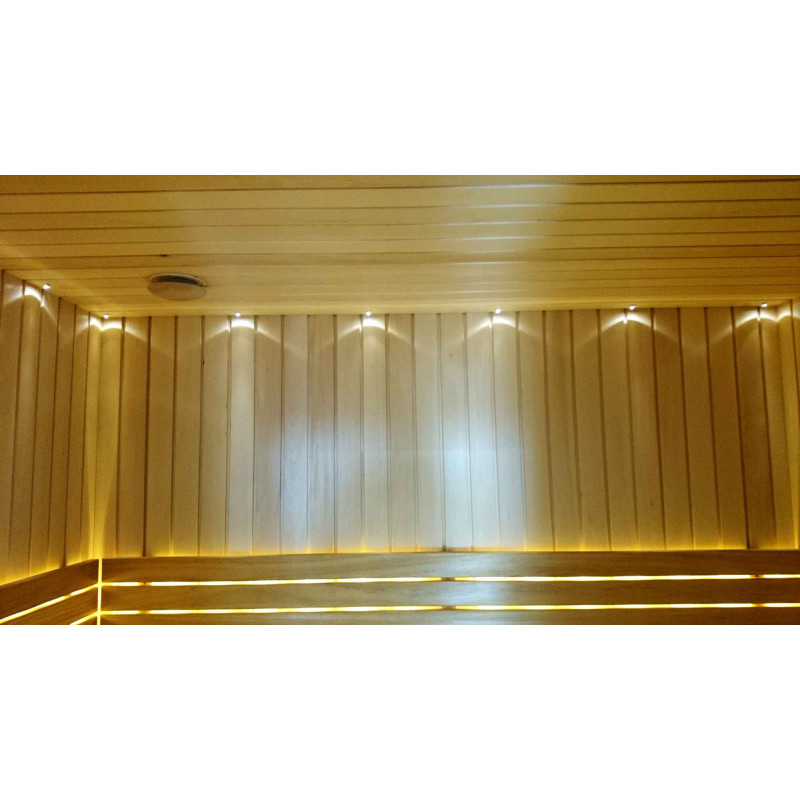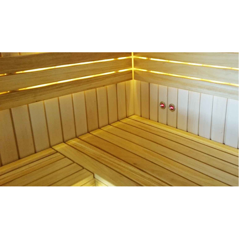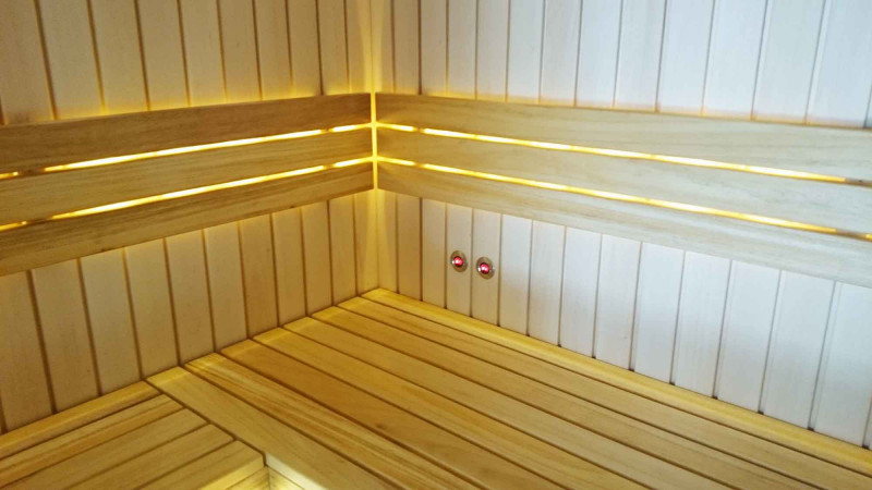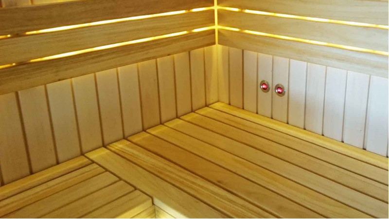 Los bancos están hechos de madera de aliso negro. El aliso negro no se calienta en una sauna caliente, por lo que es imposible quemar en contacto con la superficie. Por esta razón, el aliso negro es perfecto para bancos de sauna.