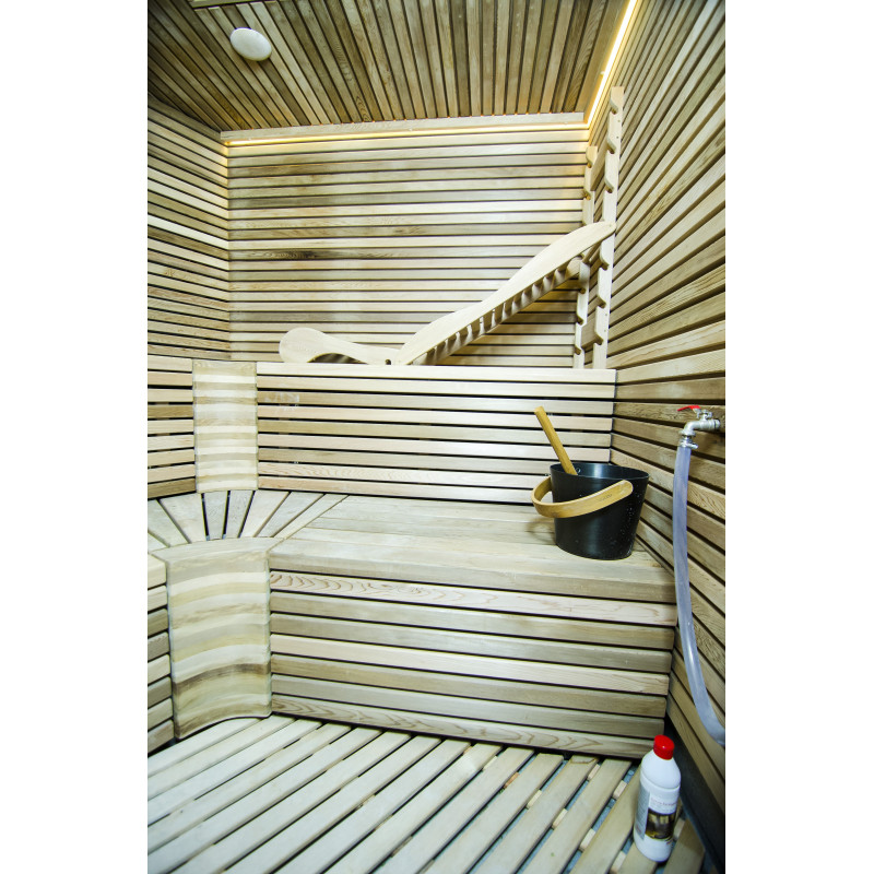 Cama relajante: puede ajustar la altura y la posición de la cama de relajación a su gusto. Muchos de nuestros clientes dicen que después de probar estos muebles, ya no pueden imaginar una relajación de calidad en la sauna en bancos estándar. Sin embargo, las relajantes tumbonas de la sauna son elegantes y con estilo. Por lo tanto, el elegante diseño de la tumbona le dará un toque extra de comodidad a su propia sauna.