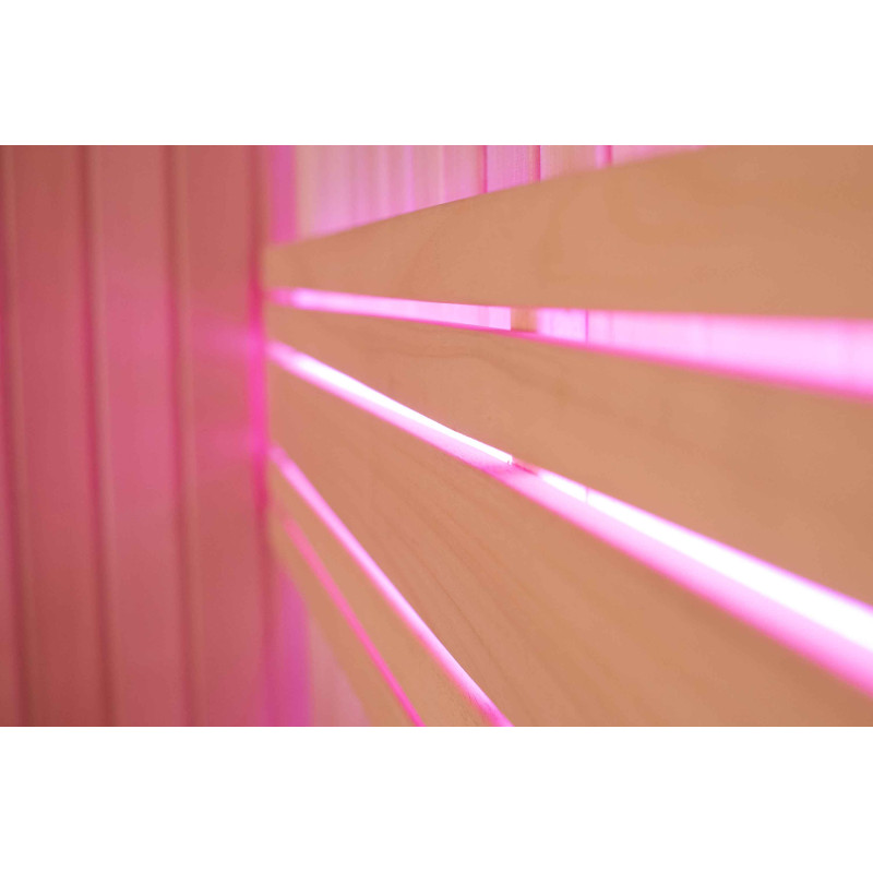 La iluminación de color LED debajo de las hamacas y los respaldos es ajustable en el panel. Puede cambiar la gama de colores y la intensidad de forma manual o automática.