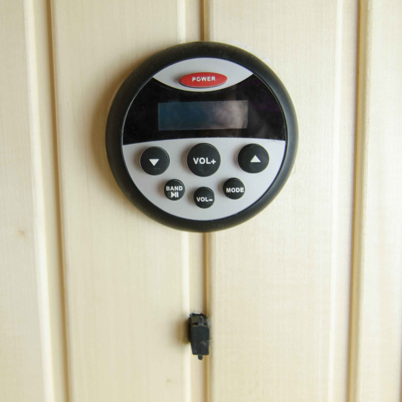 En Melnrage se implementó un moderno proyecto de sauna para uso privado. Había un rincón en el espacio del baño para los placeres de una sauna familiar. Los grandes ventanales del escaparate de la sauna se abren a la vista de la naturaleza a través de la ventana del baño, lo que garantiza una fuente de luz constante y amplía ópticamente el espacio de la sala de sauna no muy grande. Además de la gran vista, el placer de la sauna se ve reforzado por el equipo de música integrado con sonido. El reproductor multimedia está especialmente adaptado para su uso en una sauna húmeda y caliente. Tiene conexión USB, Bluetooth, radio, pantalla LCD, botones de control de goma. Los altavoces también son resistentes a la humedad, la corrosión y la temperatura de la sauna.