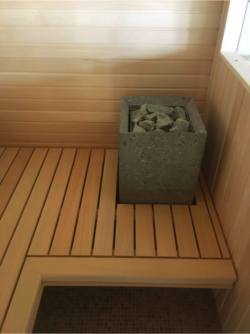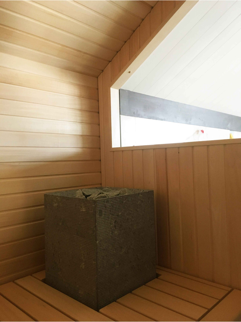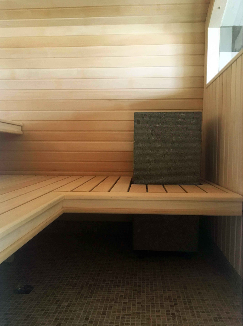 Se instalan los elementos esenciales de la sauna: rejillas de ventilación de sauna y difusor.