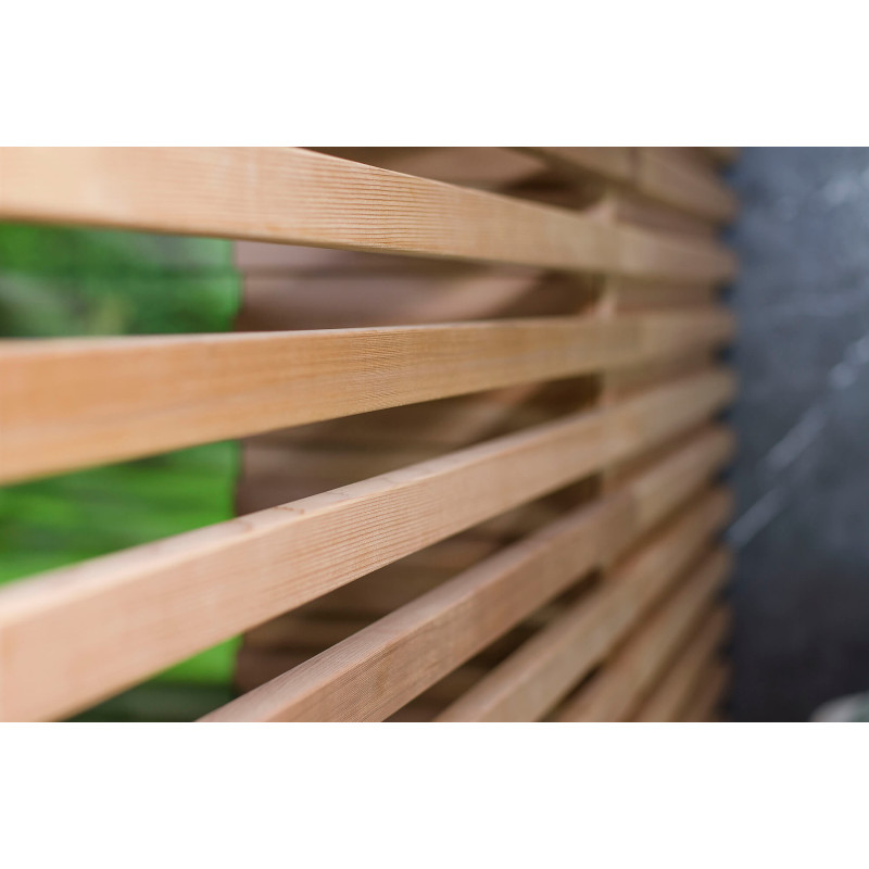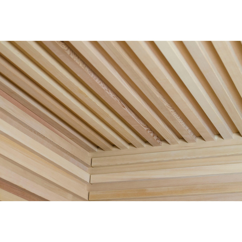 Las paredes y bancos de la sauna están fabricados con madera de cedro de la más alta calidad, según un perfil individual. Respaldos-cojines - madera de cedro hecha a mano. Esta madera es de gran calidad, no se calienta, por lo que es segura y agradable al tacto mientras disfruta de la sauna.