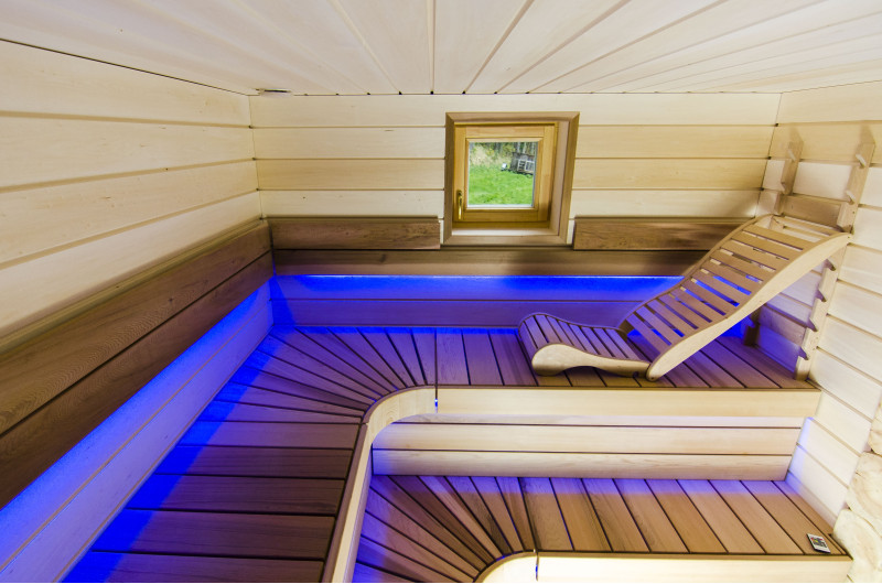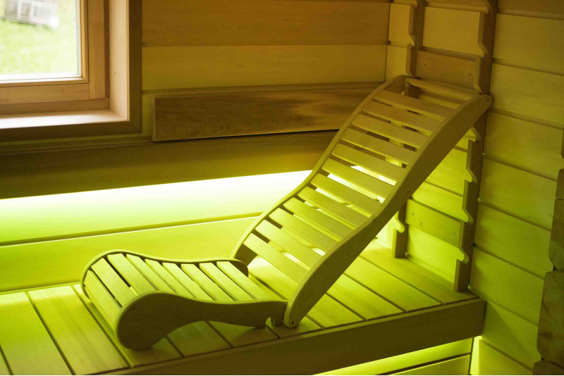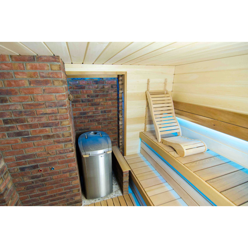 Un detalle especial de la sauna son los relajantes bancos hechos a mano. Los bancos elegantes y con estilo están hechos de madera de la más alta calidad. No solo proporciona una comodidad adicional al interior de la sauna, sino que también es particularmente cómodo, ya que es posible ajustar su altura y posición para una relajación máxima.