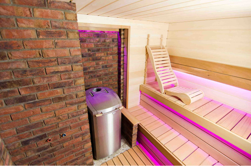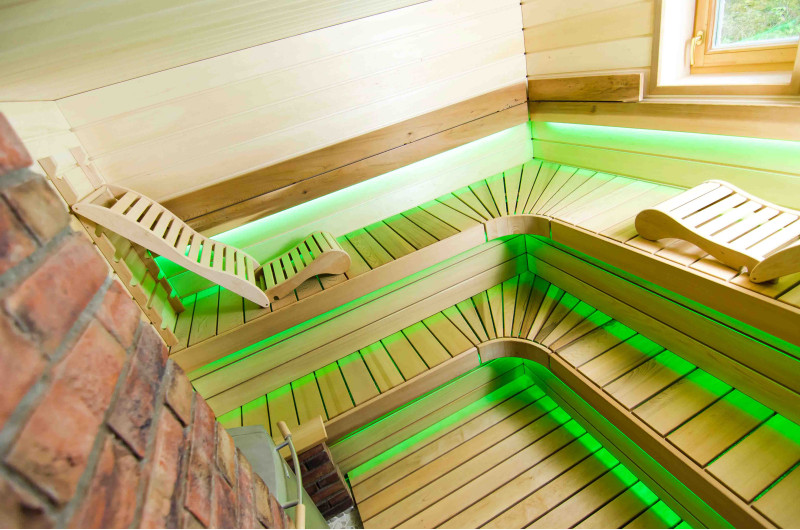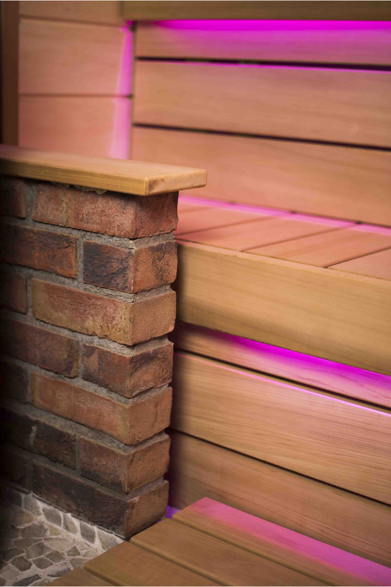 Los ladrillos de clinker con iluminación incorporada se eligen para decorar la sauna.
