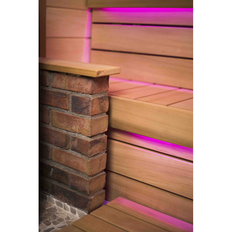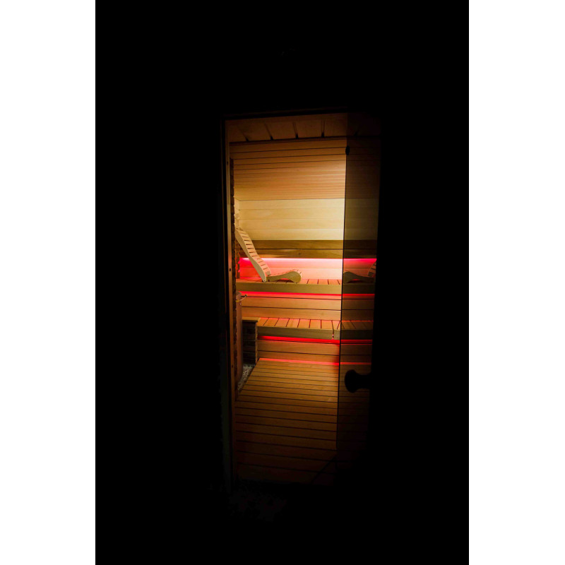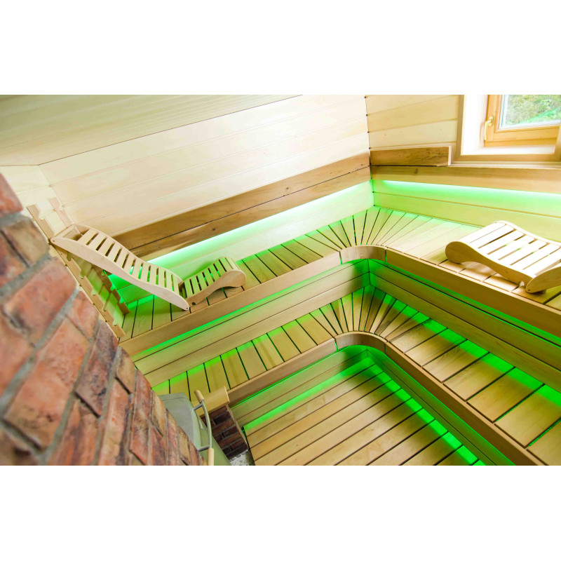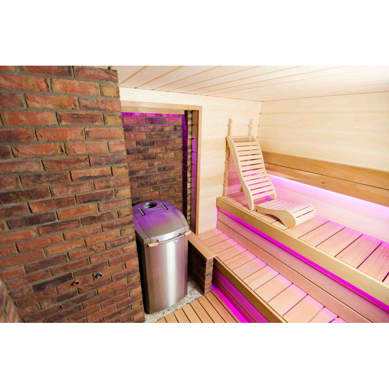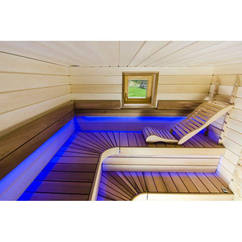 Equipado con iluminación RGB de color, controlado por un cambiador de color inalámbrico, que le permite cambiar fácilmente el color de la iluminación de acuerdo con la atmósfera de sauna deseada.